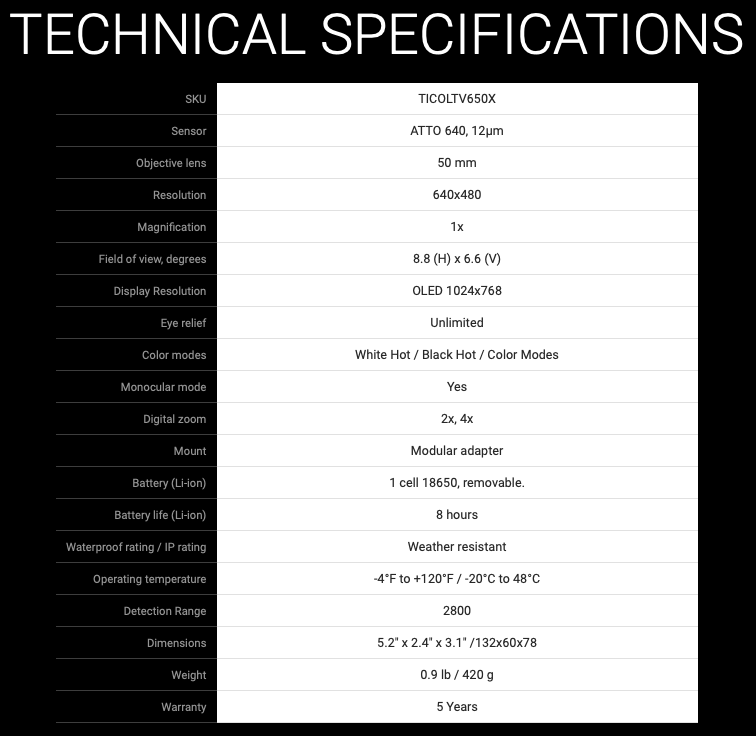 Designed for quick and easy attachment to your daytime scope without requiring re-zeroing. With high-resolution imaging and up to 9 hours of operational time, the Tico LTV is perfect for extended hunting trips.