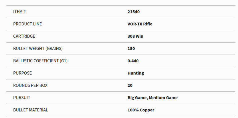 VOR-TX ammunition is manufactured to precise tolerances to ensure excellent accuracy and consistent velocities. This ammunition is new production, non-corrosive, in boxer-primed, reloadable brass cases.
