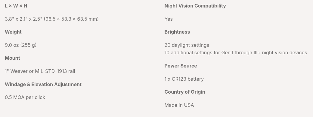 - Night-vision compatible with ten NV brightness settings