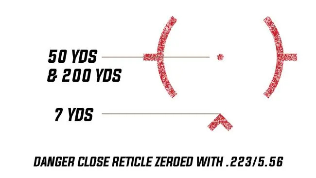 - Reticle: Danger Close Reticle (1 MOA Dot / Diamond Ring)