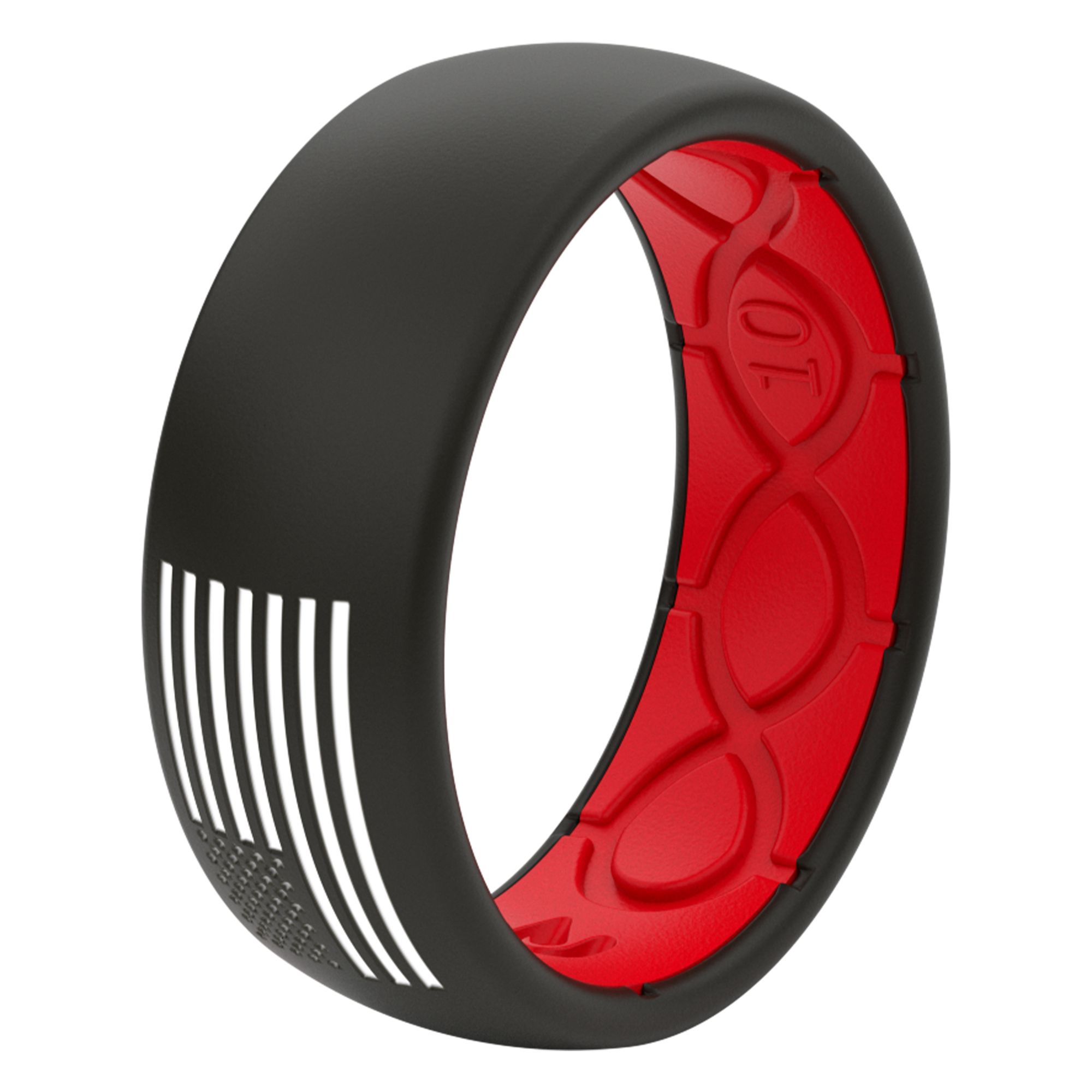 Groove's Original America Silicone ring is a great way to show your patriotism! The Midnight Black band with the Raspberry Red interior paired with the White Flag allows your ring to be noticed. Our cutting-edge Groove technology allows your ring to breathe, unlike all other silicone bands. The medical grade silicone gives your ring an unmatched level of comfort and flexibility. These rings are extremely durable and can withstand whatever you put it up against. Groove's America ring is perfect for active military members, veterans, or any patriotic American!