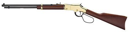 The Henry Golden Boy is a masterpiece of fine crafted gunsmithing. Any shooting enthusiast who closely examines one is immediately impressed with the excellent fit, finish and overall visually elegant design. It features a blued octagonal barrel, American walnut stock, brass buttplate, with a gleaming Brasslite receiver and barrel band. The classic styling will transport you back to the wild and wooley days of America's Old West, when company founder Benjamin Tyler Henry designed the original Henry lever action rifle. Adding to the historic authenticity is the adjustable buckhorn-type rear sight. Small game hunters and plinkers will appreciate its substantial 6.75 lb. heft. It balances well and makes for highly accurate offhand shooting. The smooth action associated with Henry rifles opens and shuts with the effortless slickness, and left-handed shooters can safely use any of Henry's lever action rifles.