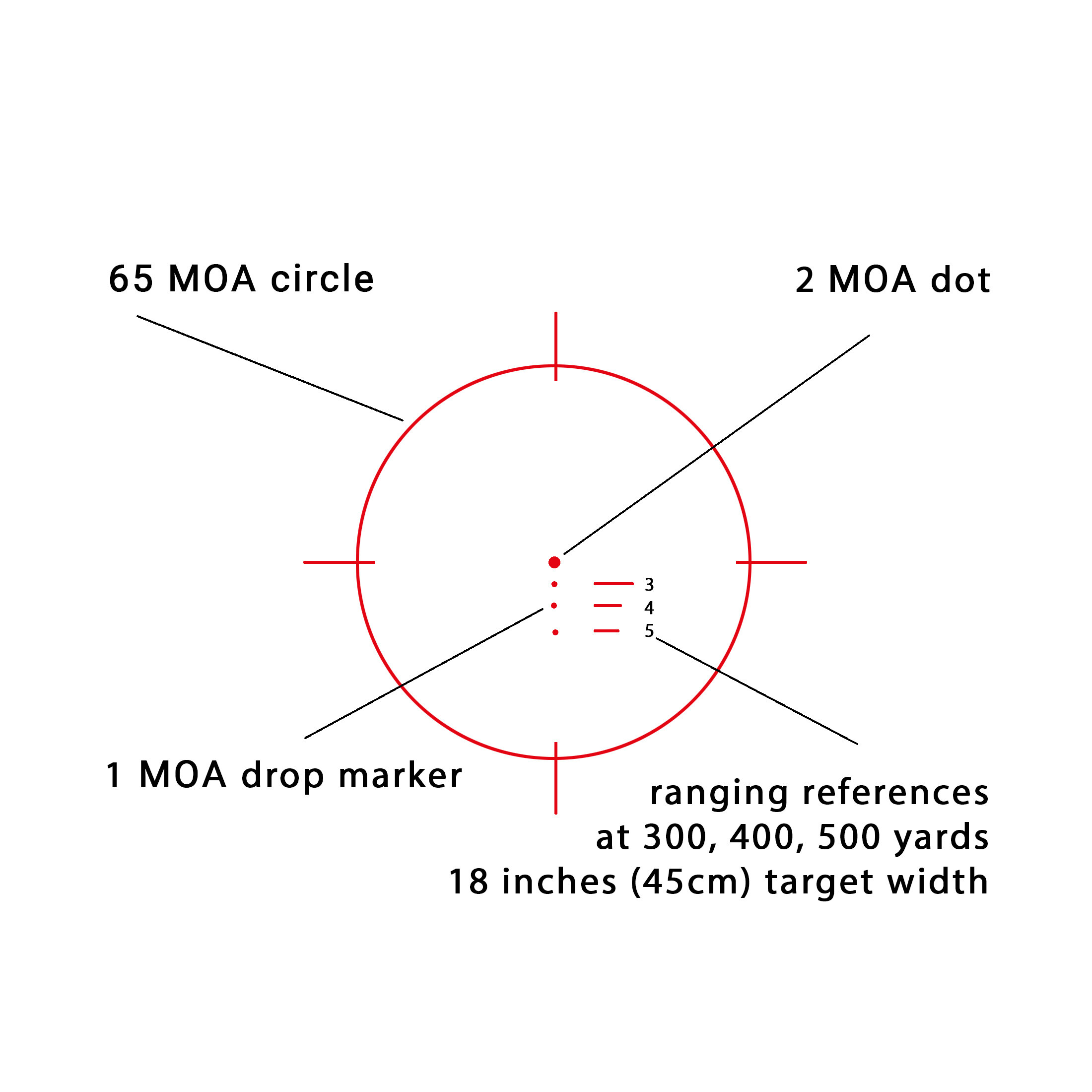 | Reticle | Special Purpose Reticle (SPR): 1.5 MOA Dot / 65 MOA Circle / 3 Dot BDC (1 MOA) / Ranging Reticle |