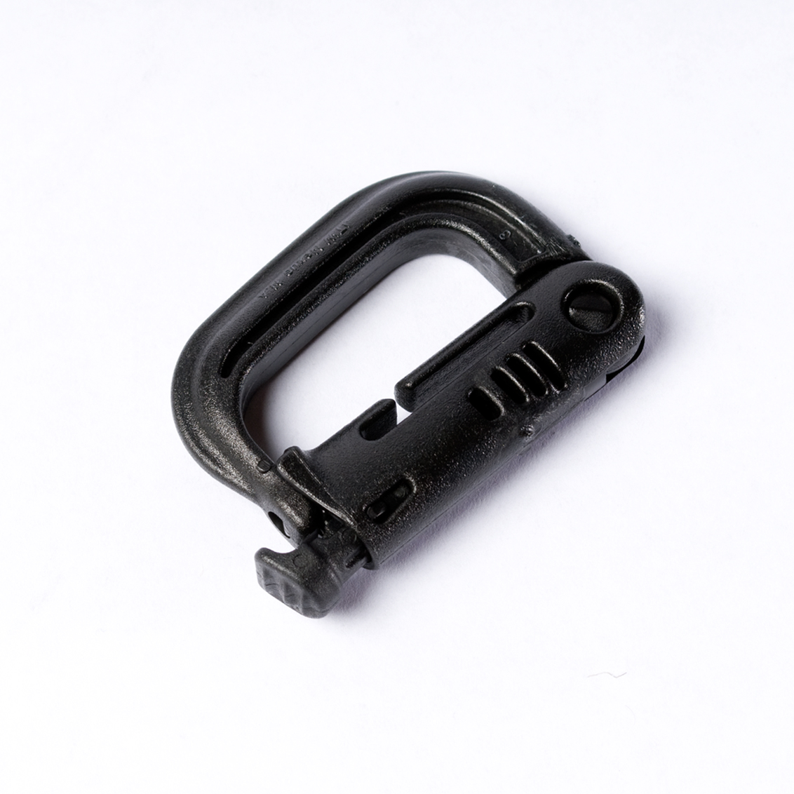 The GrimLOC™ is designed for use by operators in a tactical environment as a lightweight corrosion resistant replacement for heavy metal climbing carabineers. The high strength polymer structure easily supports weapon sling connection points to body armor, and features a break away design to eliminate snags. The GrimLOC™ is perfectly suited for connecting your tactical accessories that require quick and easy one-handed access.