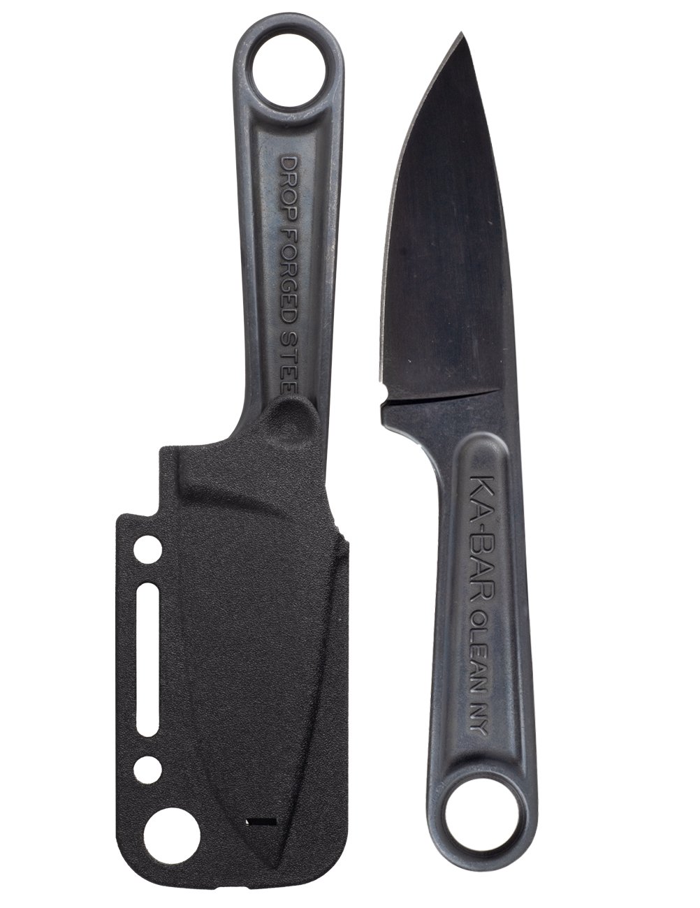 The Blackout Wrench Knife is a mid-sized fixed blade designed for versatility and functionality. The knife is made from a single piece of 425 high-carbon stainless steel coated with a sleek black oxide finish and has a sturdy utilitarian design. The bottom of the handle features a circular cutout that mimics the look of a real wrench that is for decorative purposes only. The knife comes complete with a hard plastic sheath and is just the right size to carry on the belt or around the neck. Perfect for mechanics, hard workers, and people that enjoy a bit of novelty with their exceptionally functional tools.