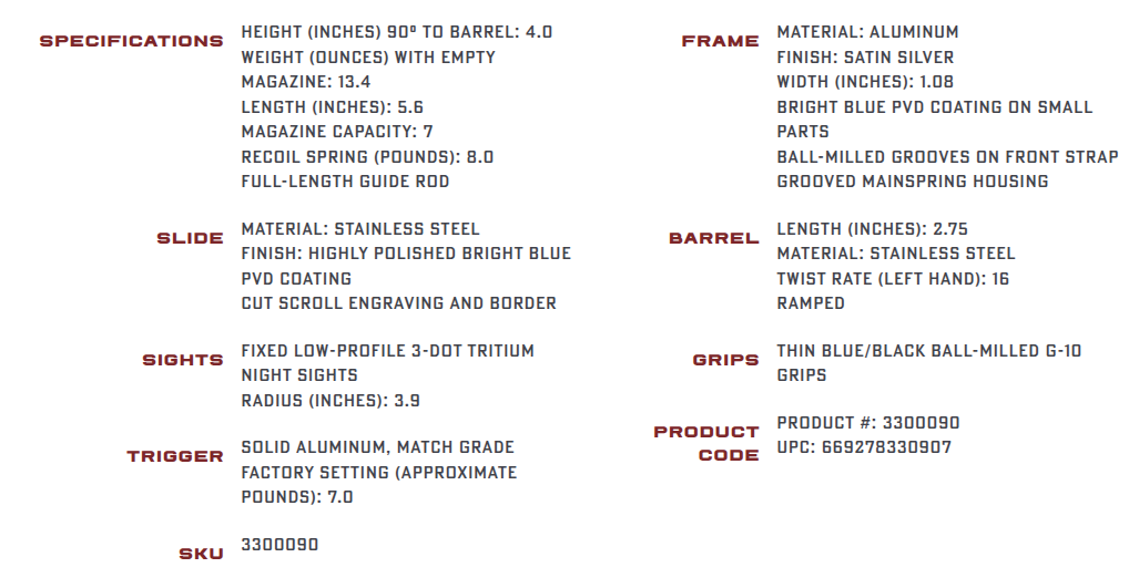 | Sights | Fixed Low-Profile 3-Dot Tritium Night |