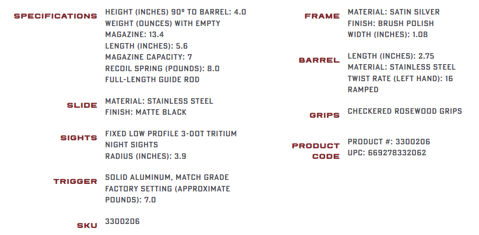 | Sights | Fixed Low-Profile 3-Dot Tritium Night |