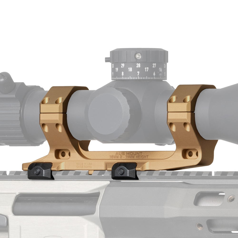 Introducing the AUS Mount for 35mm diameter magnified optics, from Reptilia. Driven by the request of an end user group, the AUS Mounts are the culmination of a 2 year development program. Like our DOT Mount line the AUS Mount attaches to any M1913 Picatinny rail via our anti-snag spring-loaded nitrided steel clamp and custom bolt mounting system which can be tightened with either a 5/32 hex or a flat blade driver to sit flush with the body of the mount for a low-profile, streamline design. Also like our DOT Mount line, the AUS mount is machined from a single piece of billet 7075-T6 aluminum and is finished with MIL-STD Type III, Class 2, hard anodize coating.