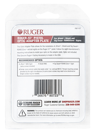 The Ruger-57 Optic Adapter Plate supports the use of JPoint MRD. & Shield RMS red dot sights on the Ruger-57 pistol.