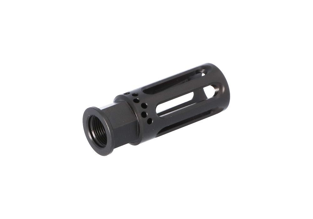 This SIG SAUER engineered 5.56 NATO flash hider doubles as a muzzle compensator, as well. It provides the user with less felt recoiland muzzle rise while reducing the flash from the muzzle.