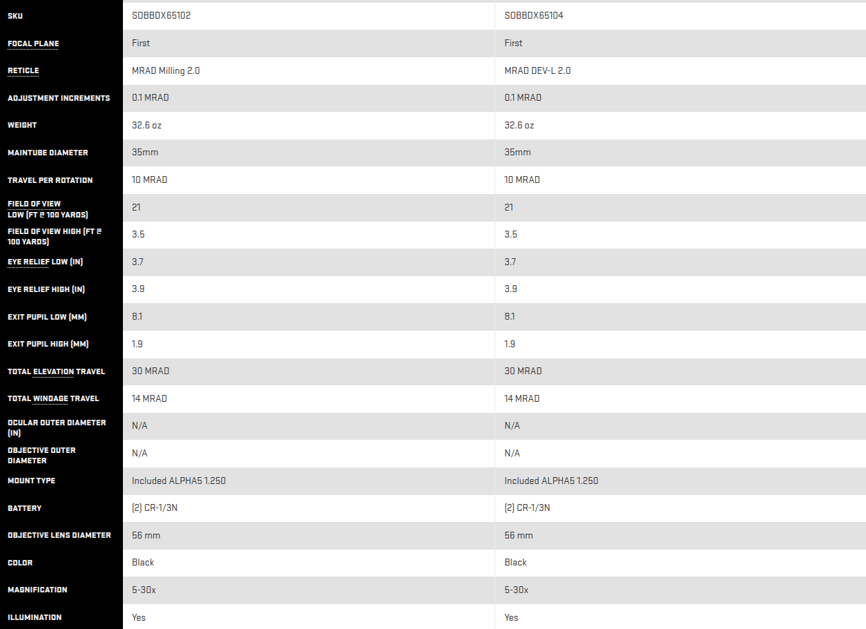 - Includes ALPHA5 mount with LRF diving board