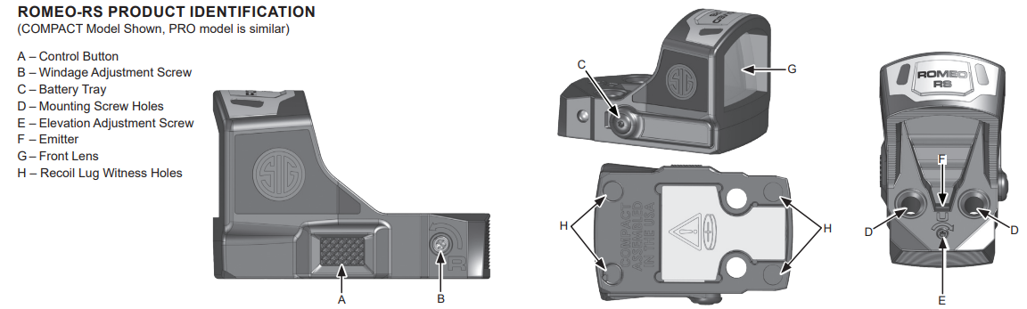 The ROMEO-RS features a convenient side-mounted illumination adjustment button embedded into the polymer housing to prevent accidental interference, and the side-load battery tray makes battery replacements easy to do while maintaining zero. SIG SAUER’s updated footprint design maintains true compatibility with industry-standard optics cuts while allowing for the additional lock-up strength provided by steel recoil pins to eliminate the potential for any lateral shift.