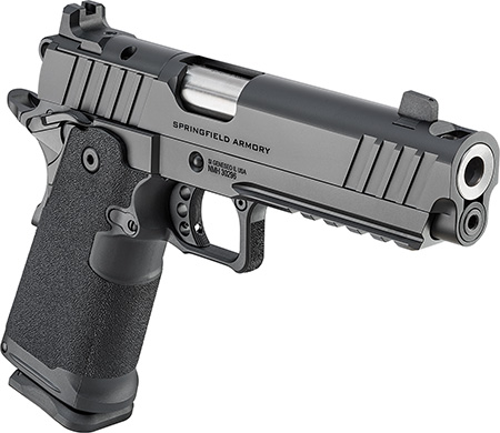 The Prodigy Comp from Springfield Armory takes the proven 1911 platform and enhances it with double-stack capacity and a performance-driven feature set. Reconfigured around a double-stack magazine, the polymer grip module mounts to a forged steel frame. The AOS-compatible slide and barrel assembly is integrally compensated to reduce muzzle rise, while a Picatinny rail is ready to accept today's most popular accessories.
