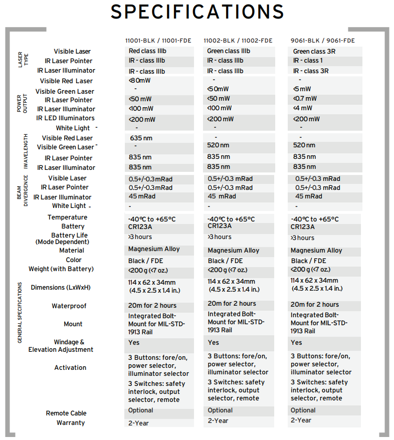 - 40° – 50° fixed LED NIR illuminator for CQB operations.