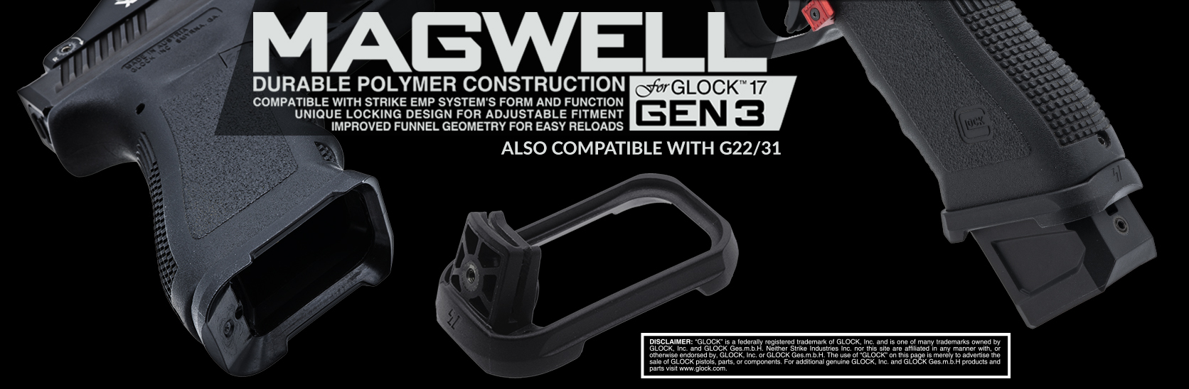 Introducing the Strike Industries Gen. 3 Magwell for GLOCK™ 17! Our Gen 3 Magwell was designed to provide easier reloading of the magazine while adding a stylish look. Compatible with most aftermarket magazine base plates and extensions. (Aso compatible with G22 / G31 / G34) *Not compatible with backstraps installed on the GLOCK™ frame.