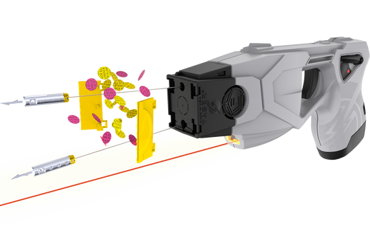 - Immobilizes an attacker for up to five seconds with NMI (Neuromuscular Incapacitation)